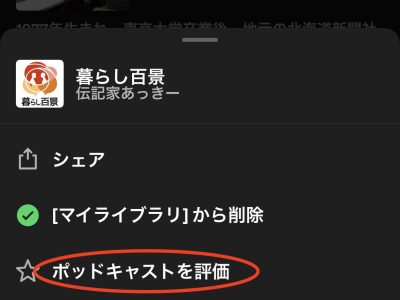 ③「番組を評価」または「ポッドキャストを評価」の文字をタップ。