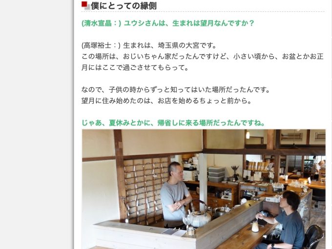 望月「YUSHI CAFE」のユウシさんのお話。この頃は文字ベースで記事を書いていた。